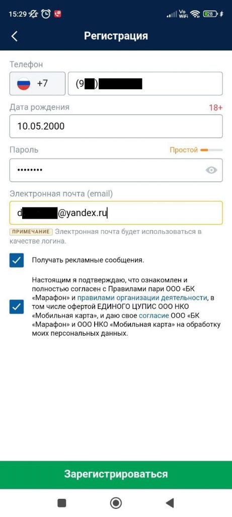 Как зарегистрироваться через мобильное приложение «МарафонБет» и начать делать ставки
